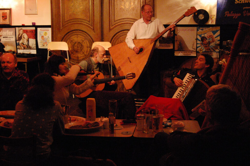 Bei einer unserer Balkan-Nächte, hier mit dem AusnahmeGeiger Winny Mathias und der Gruppe “Gari gari”